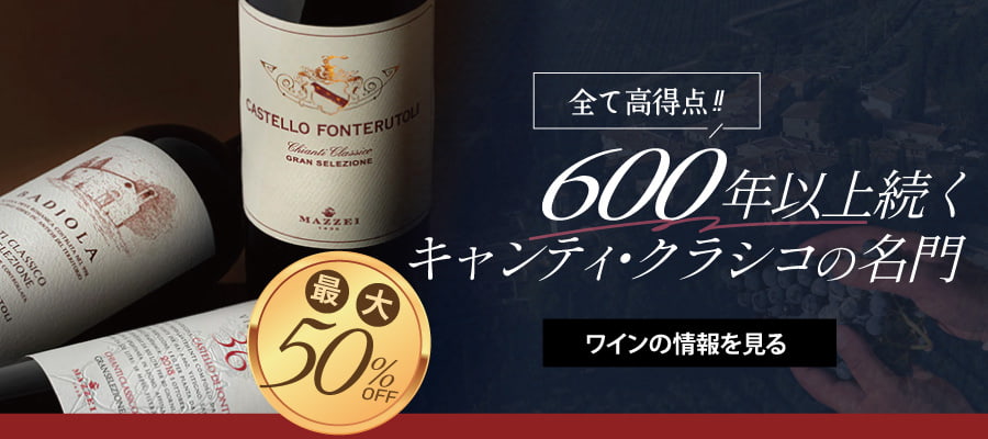 マッツェイの5アイテムが「35~50%OFF」の特価価格となっています。この機会に、イタリアのサンジョヴェーゼの名手の味わいをお楽しみください♪