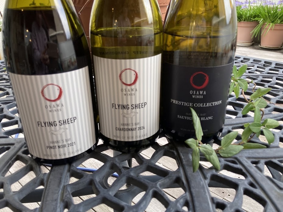 テラスでゆるっと試飲。今日はニュージーランドの大沢ワインズです